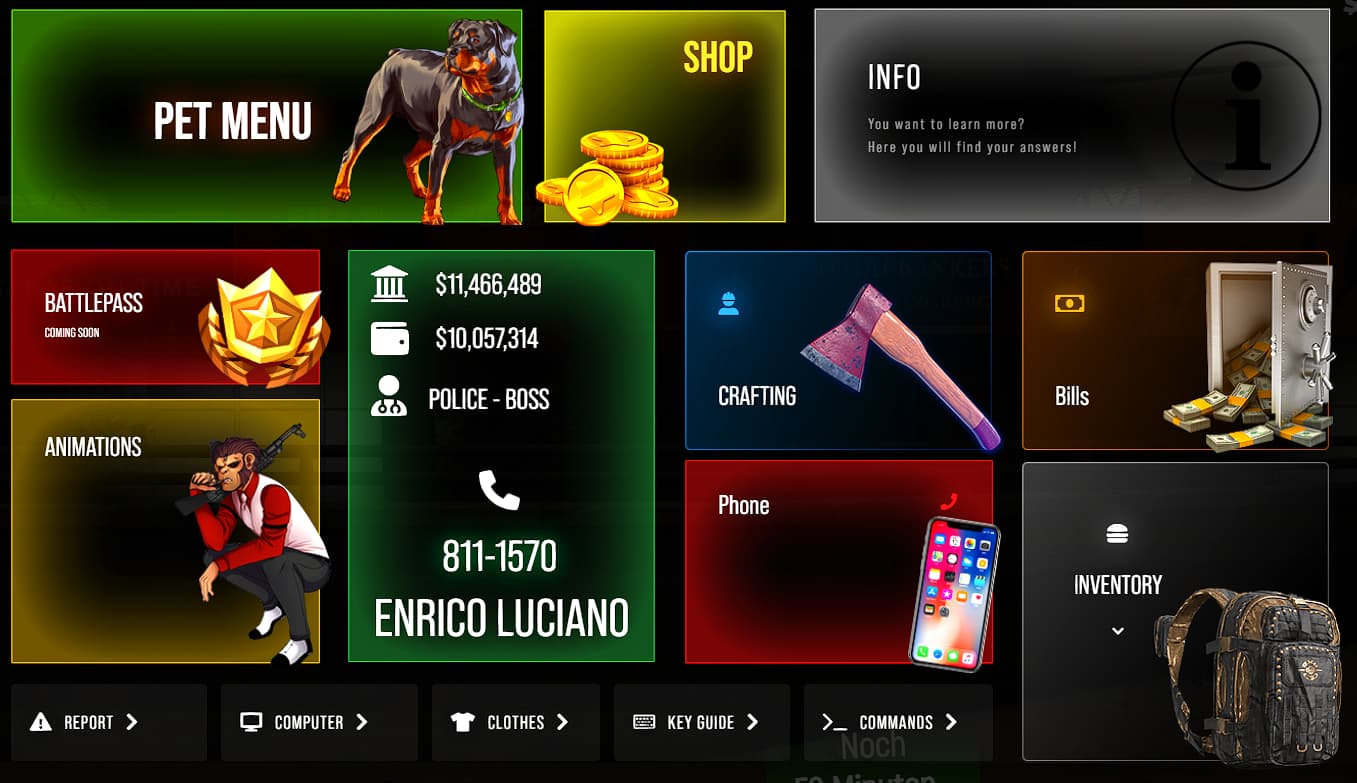 This resource allows your players to quickly navigate through the main menu. Simplify menu finding for new players. All important menu and data in one place.