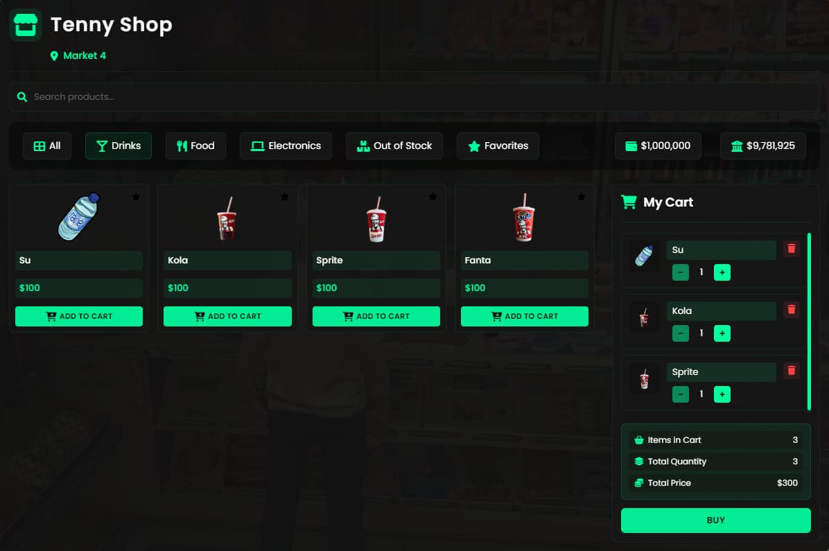 A modern and user-friendly market system. Advanced market script with ESX and QB-Core framework compatibility and ox_lib integration.