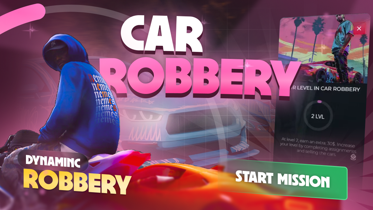 - Robbery leveling system: the more you rob, the better vehicles the player unlocks.