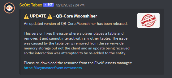 RP based script allowing players to purchase a portable moonshine crafting bench, collect required items from around the world & brew moonshine wherever they want. Fully configurable language & custom item images included.