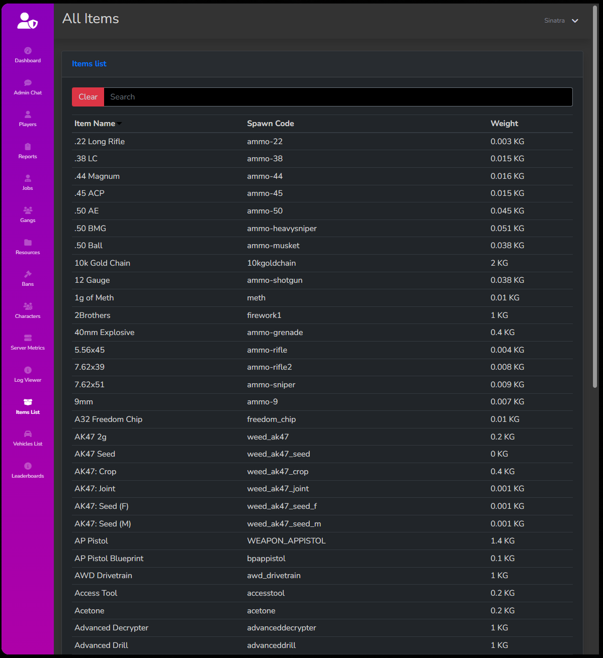 Jobs and Gangs pages where you can list all of the jobs and gangs in your server and their members no matter if they are online or offline. You can also view player’s information from these screens, as well as fire, set grade, warn, and ban, online or offline.