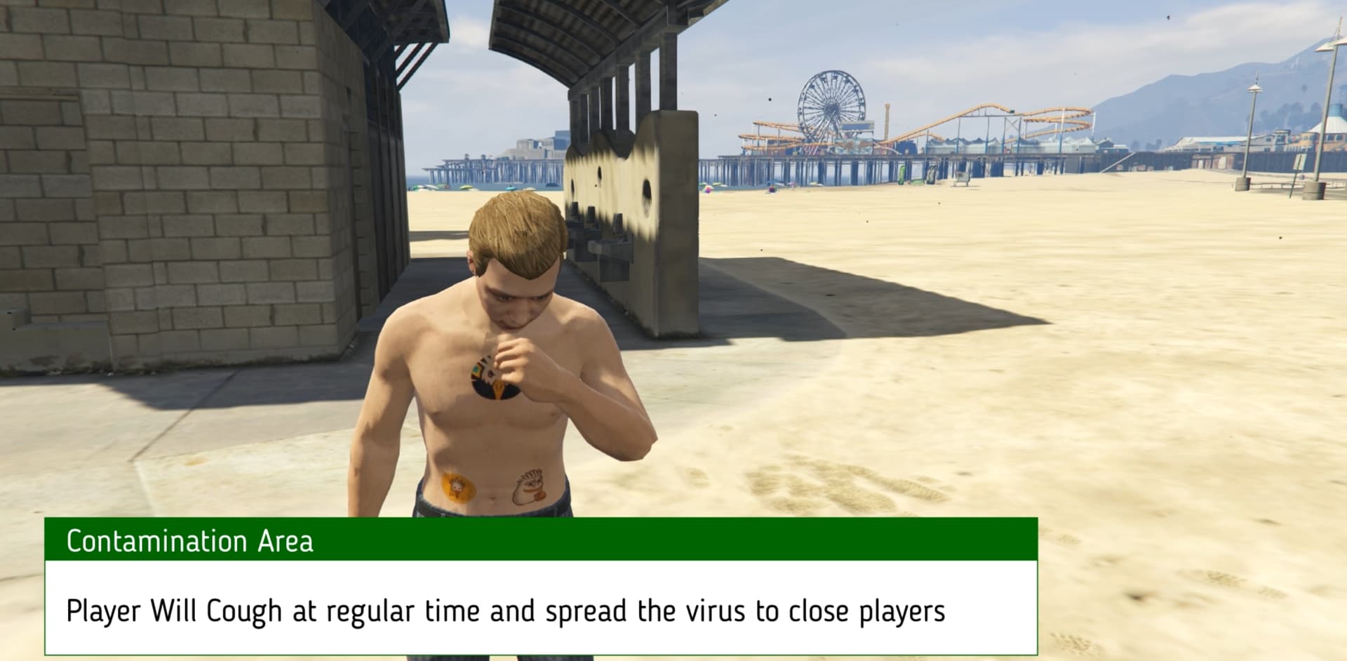 Players will cough within a specific time, and will spread the virus (Probability can be configure, range too etc etc)