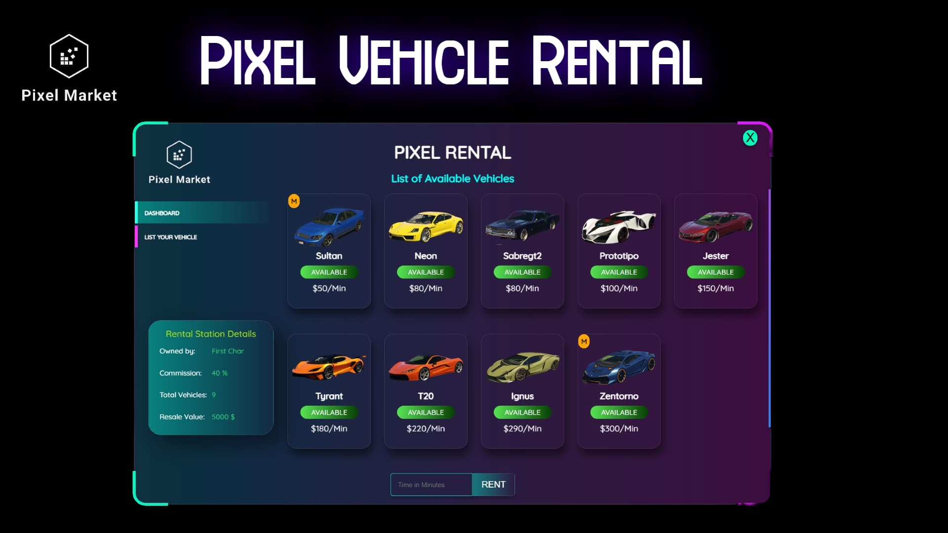 Detailed Pixel Vehicle Rental Preview: