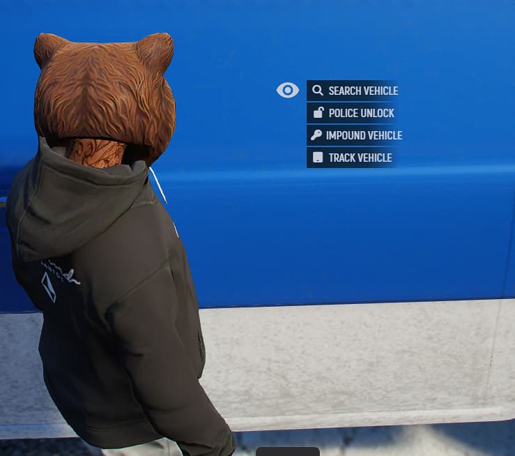 - Police Actions Menu (F11) – Centralized quick-access interaction menu.