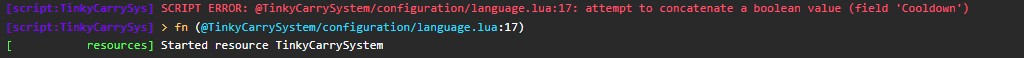 [script:TinkyCarrySys] SCRIPT ERROR: Execution of native 000000006e31e993 in script host failed: Argument at index 0 was null.