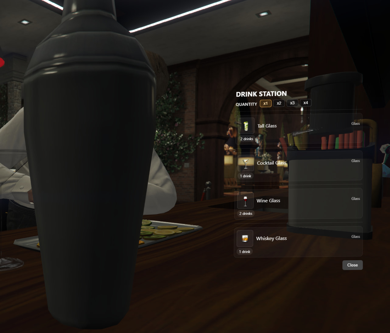 Cocktail / Drink Mixing- Similar to plate assembly, select a quantity of up to 4 drinks at a time.