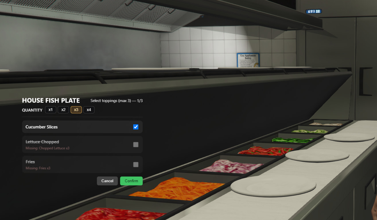 - Manage your menu directly in-game by adding, editing, or removing items.