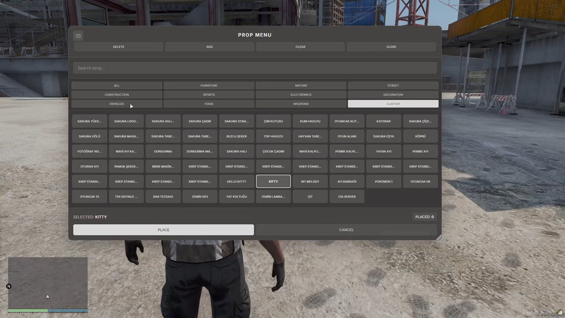 Open the Prop Builder menu with one key and browse through hundreds of props β from furniture to tech items, decorations, and even custom models. -