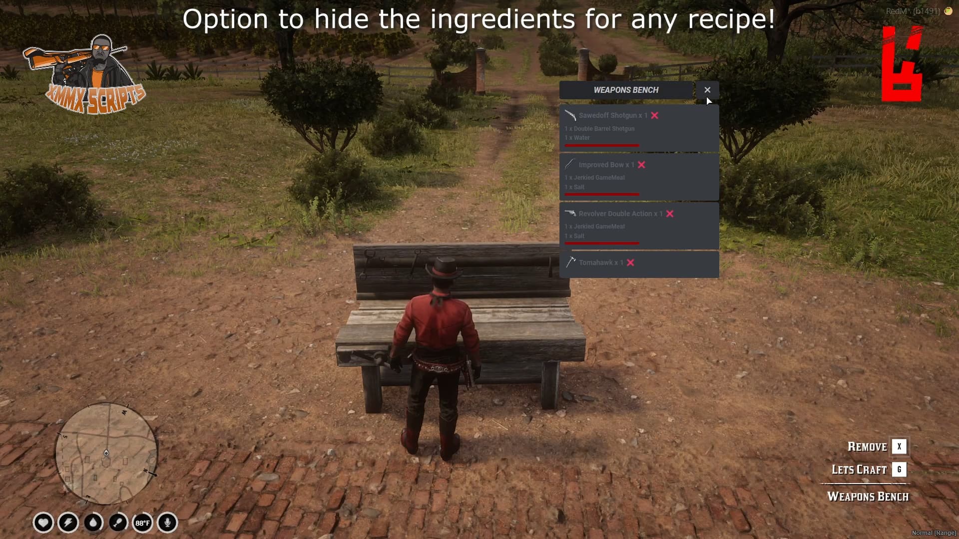 • This script empowers players to place crafting prop items anywhere they desire. You must configure recipes for each crafting prop item, with the option to disable the ingredient lists for a deeper roleplay experience.