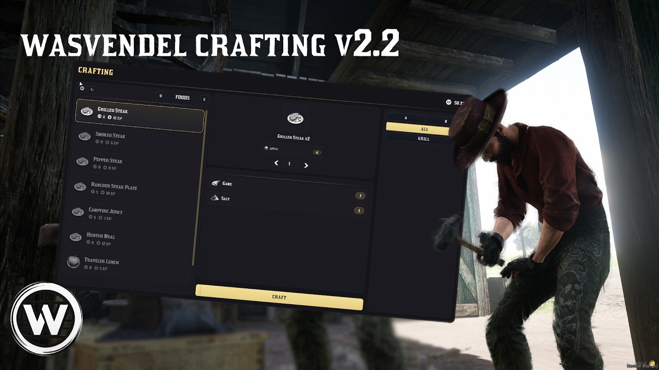 wasvendel crafting is the ultimate crafting menu solution for VORP, offering a clean design, powerful category system, and full multicharacter support. With EXP progression, prop/location/job-locked recipes, and Discord logging all backed by optimized performance and easy configurability it’s your best choice for immersive RedM crafting.
