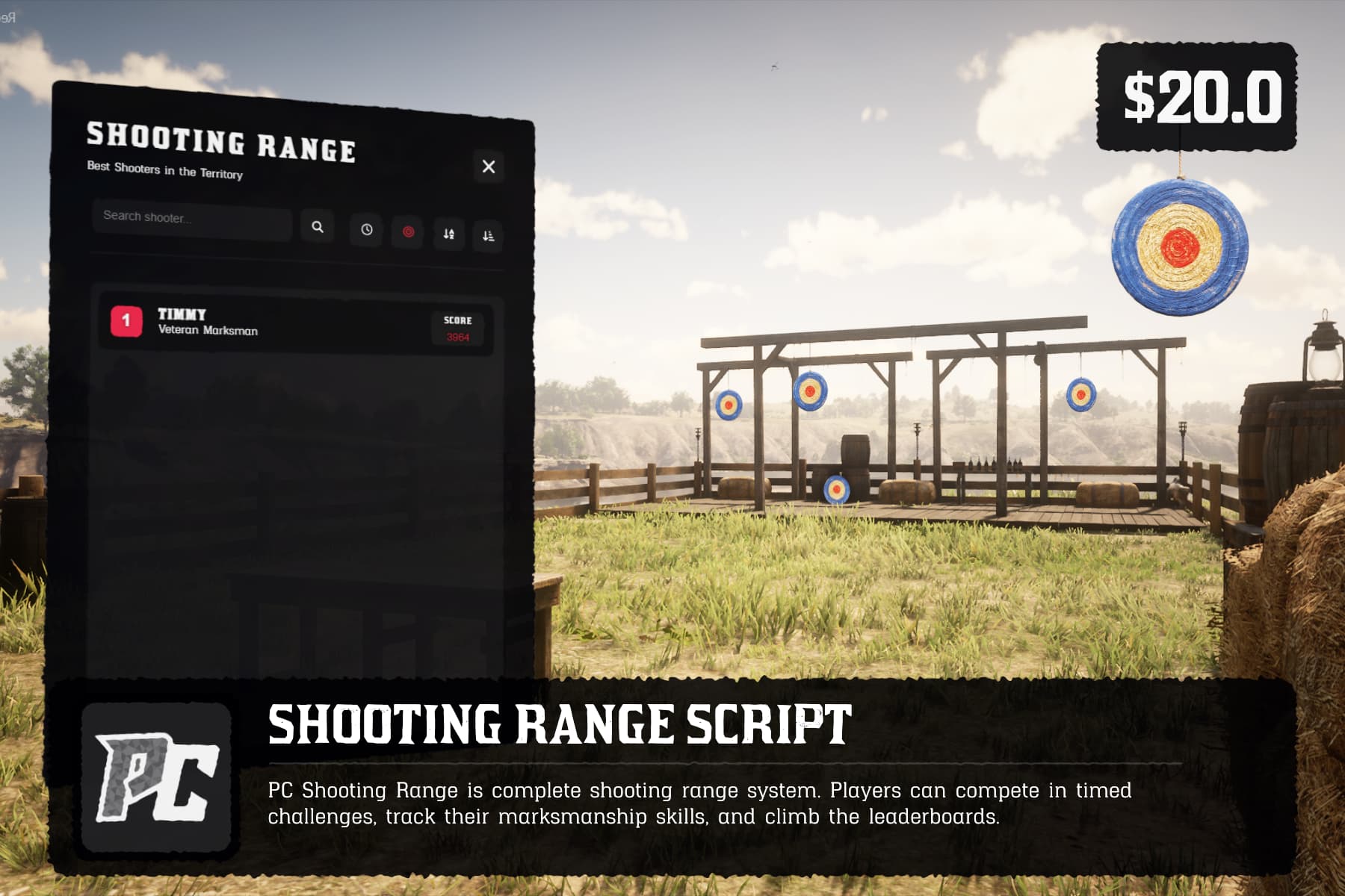 Walk up to a shooting range, interact with the marker. Set your shooter name if it’s your first time. Choose between the 30-second rapid fire challenge or the 20-target speed run. Targets spawn dynamically, shoot them down, and watch your score climb. Top performers get rewarded when rankings reset.