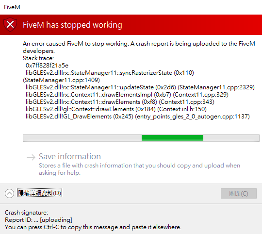 Hello wanh9165, I took a look at the dump file you sent . Are you using any external modifications? If so, please remove them and try again. (From what I can see in the dump, you should remove libGLESv2.dll and concrt140.dll from the GTAV folder.) If these files are not present, try updating your graphics card drivers and reinstalling FiveM cleanly. Unfortunately, with the data I have, I can’t provide further instructions. Please check these things and let me know how it goes. I hope I was able to help resolve your issue!