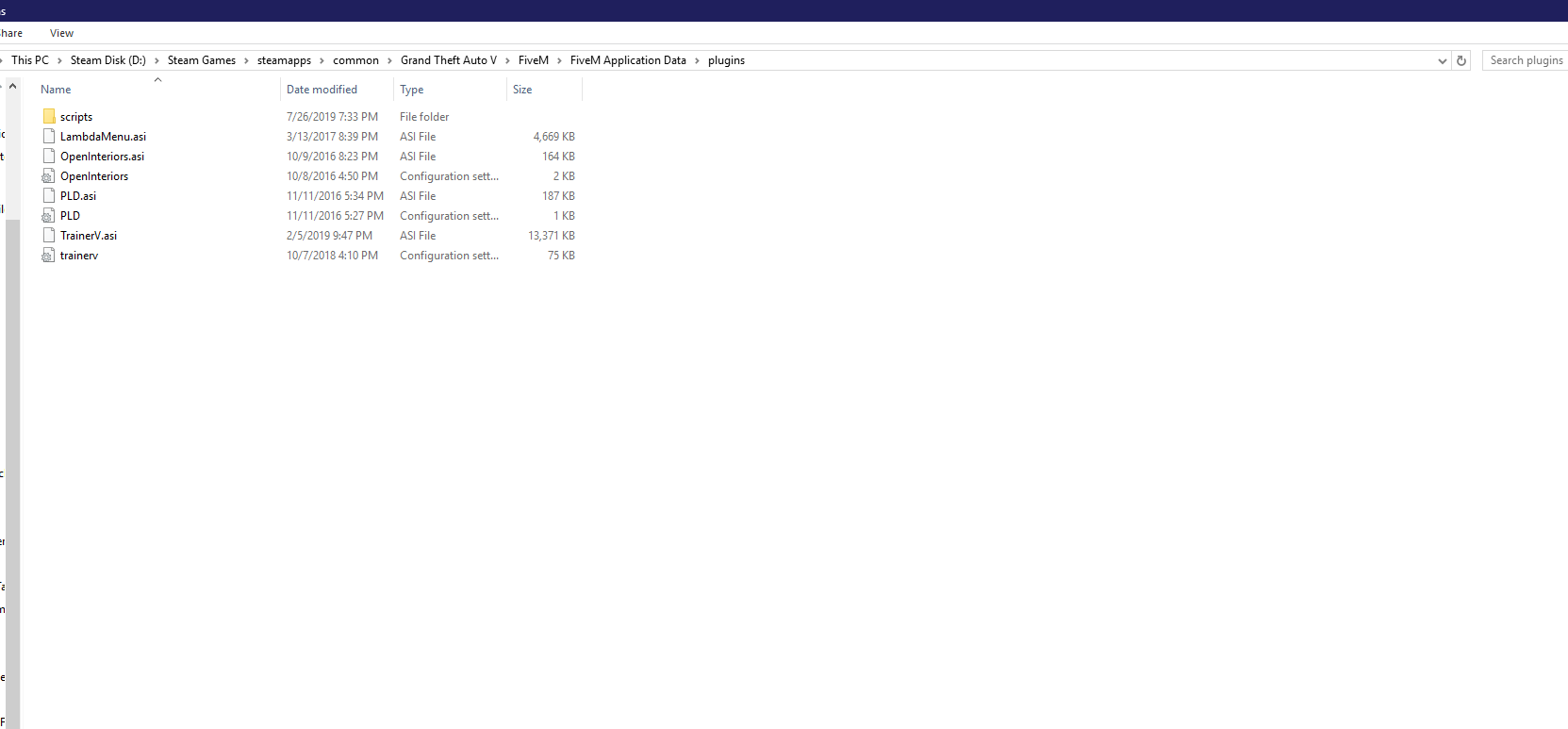 - GTA Directory - Five M Directory - Continue of Five M Directory - Plugins inside of 5M Directory