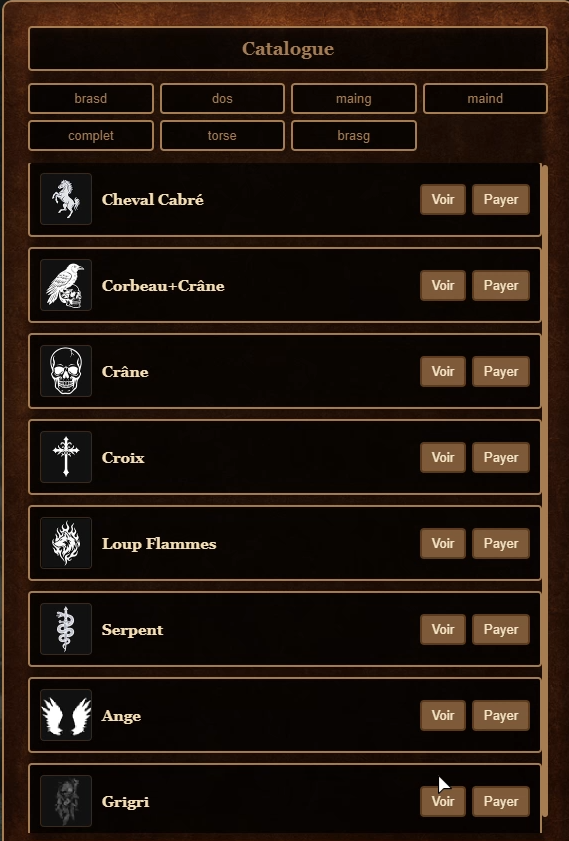 - Paiement du tatouage via la monnaie du serveur (dollars ou or).