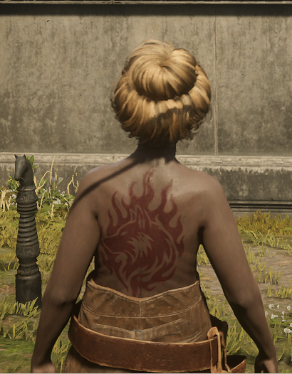 Actuellement, les tatouages sont identiques pour les 2 sexes (peut provoquer un placement légèrement différent selon le personnage). Une version séparée est prévue.