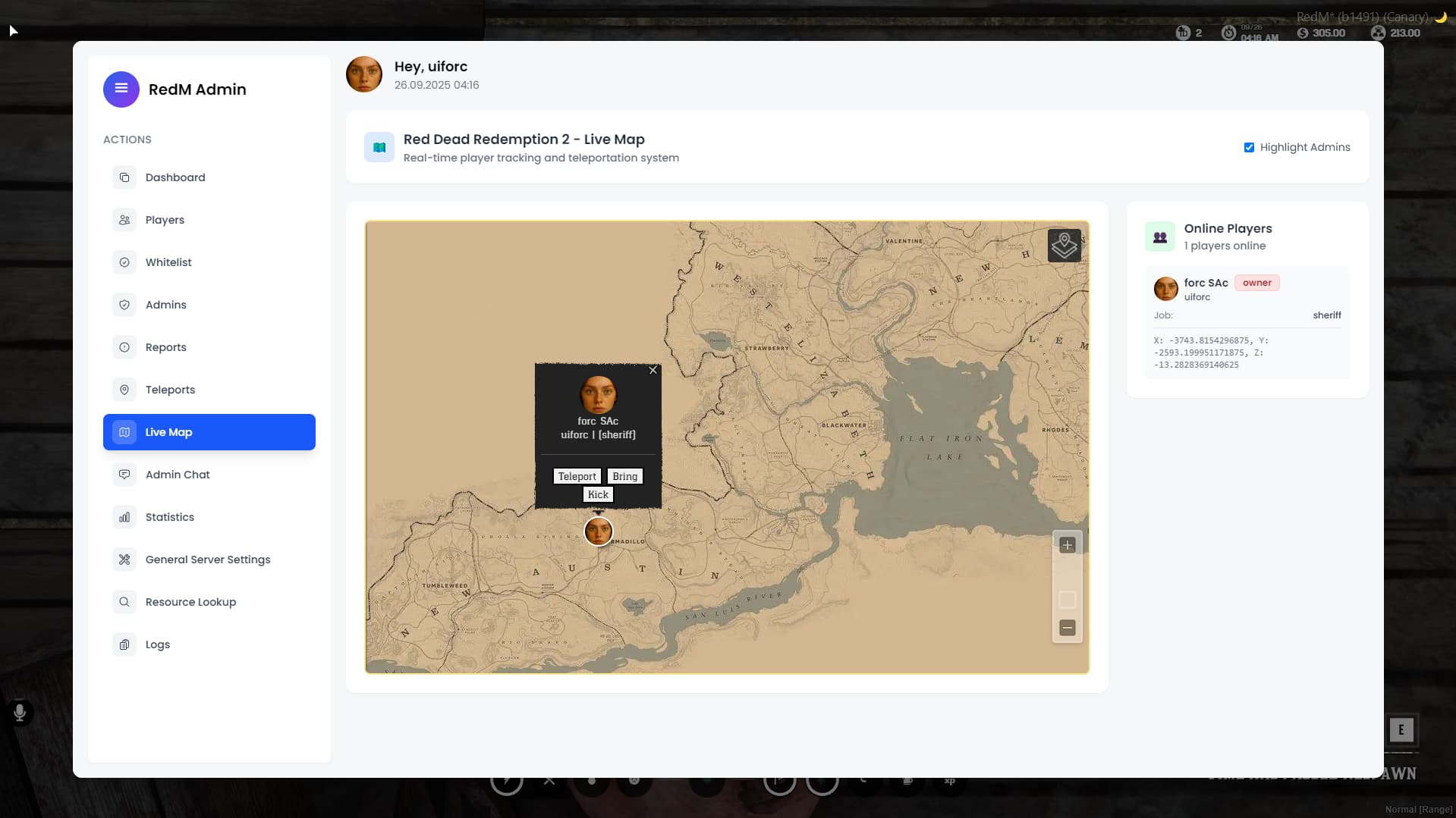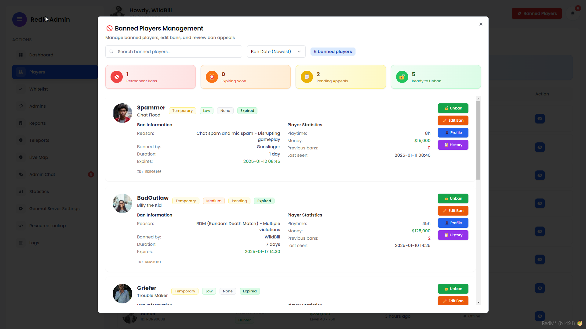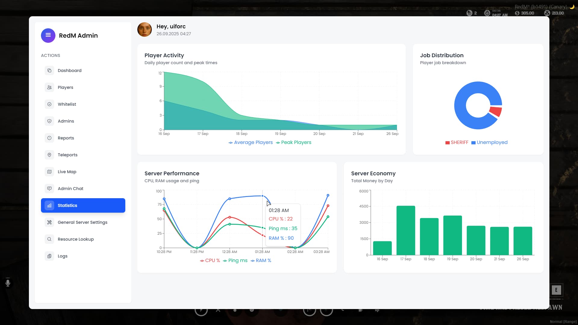 Are you tired of basic admin tools that lack the sophistication your RedM server deserves? Introducing the RedM Advanced Admin Panel - in game based administration system that brings modern UI/UX design to the Wild West!