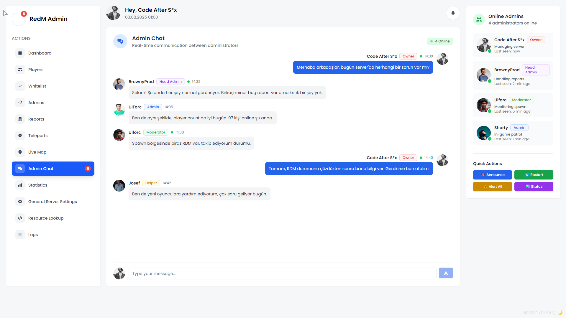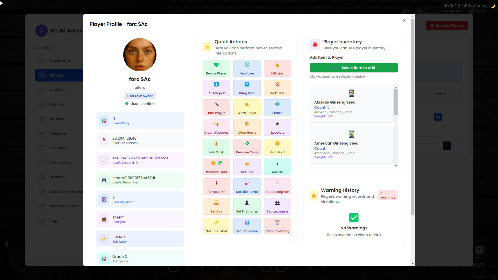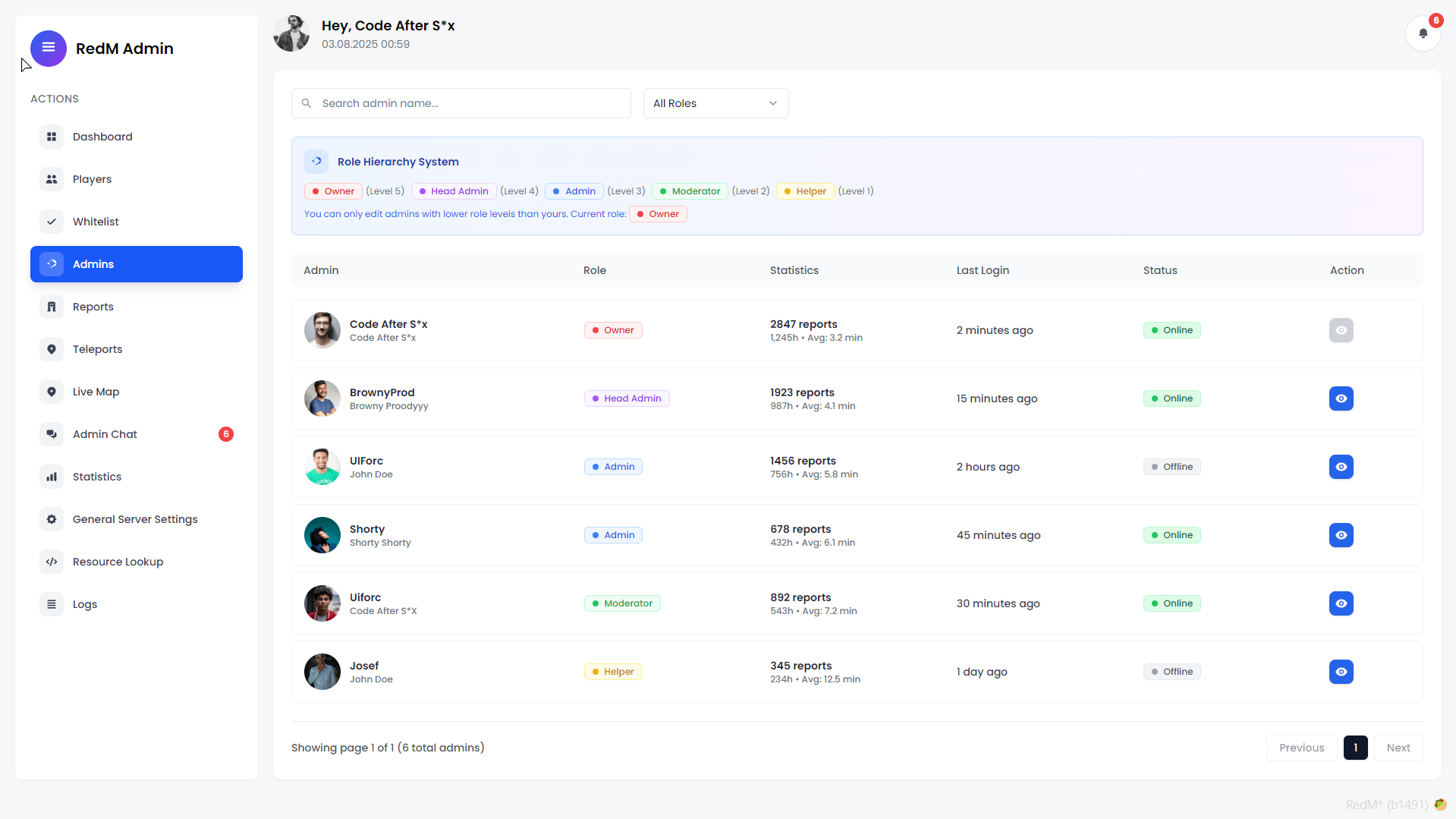 Are you tired of basic admin tools that lack the sophistication your RedM server deserves? Introducing the RedM Advanced Admin Panel - in game based administration system that brings modern UI/UX design to the Wild West!