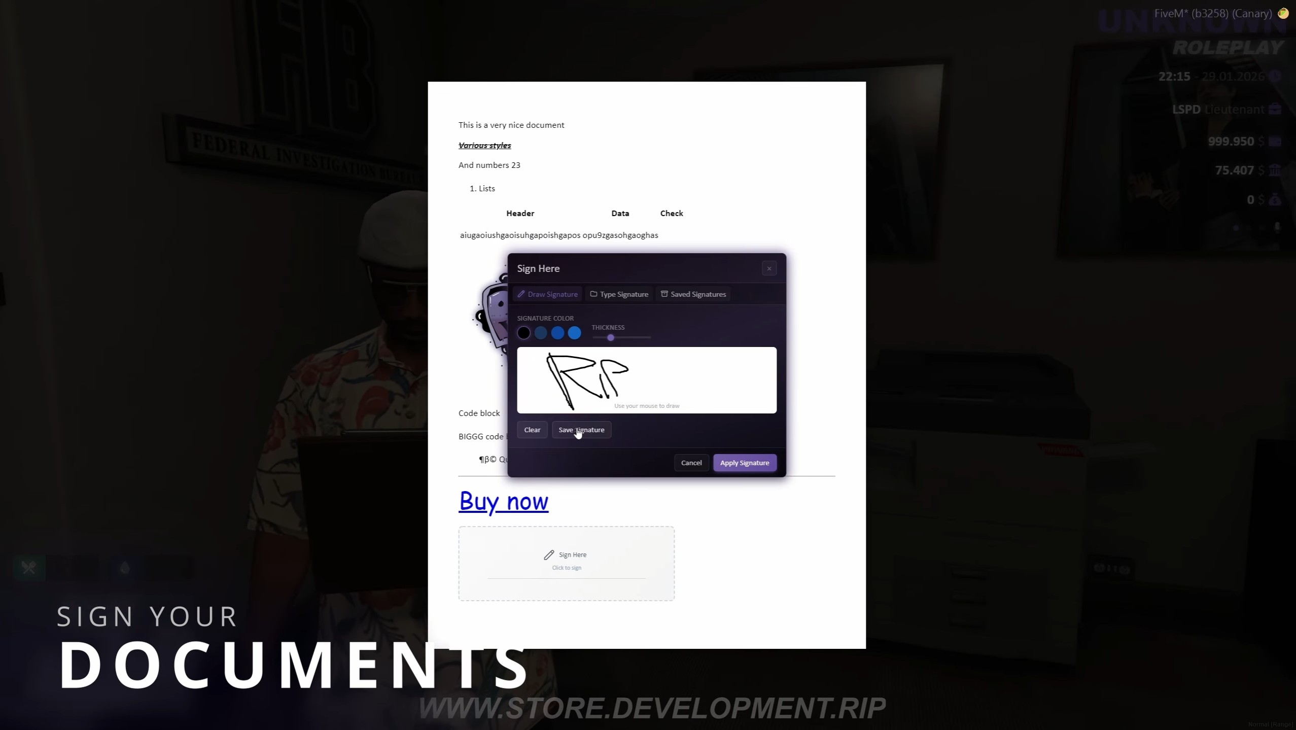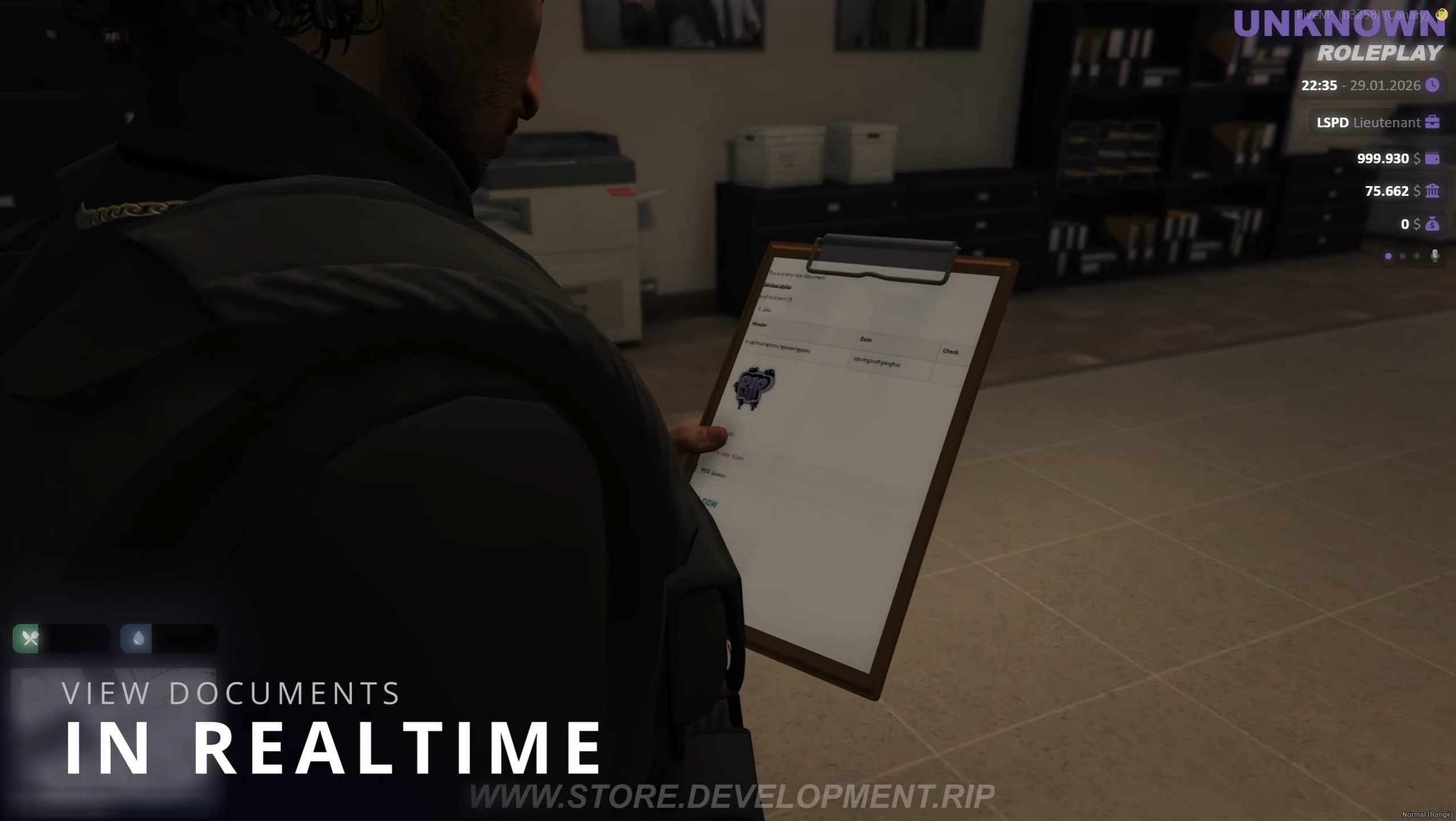 Bring professional document creation to FiveM! Create, edit, print and share rich documents with a full featured Word style editor, queue system and realistic 3D clipboard viewing.