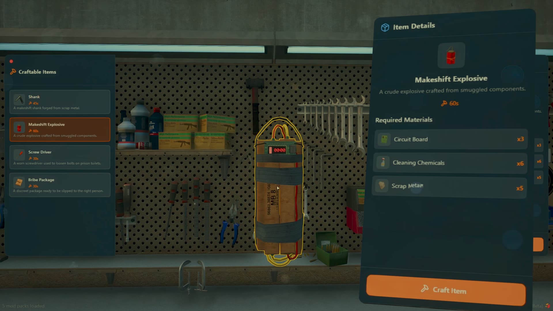 - Crafting Bench System β Craft prison tools and items that tie directly into escape gameplay.
