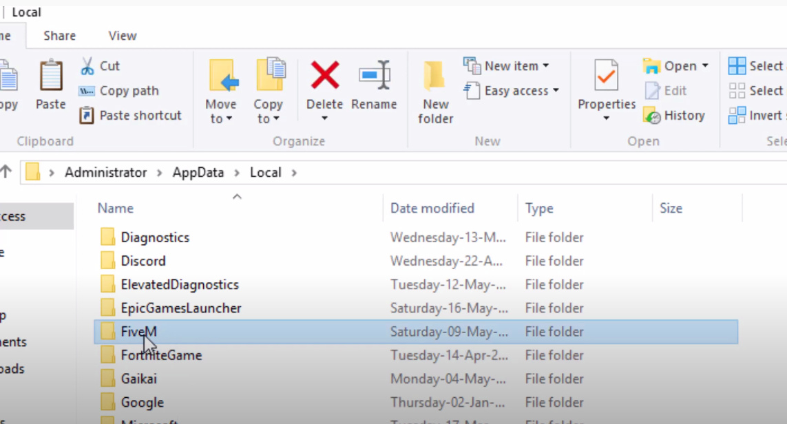After entering the Local folder, you will have to find the folder that says “FiveM”