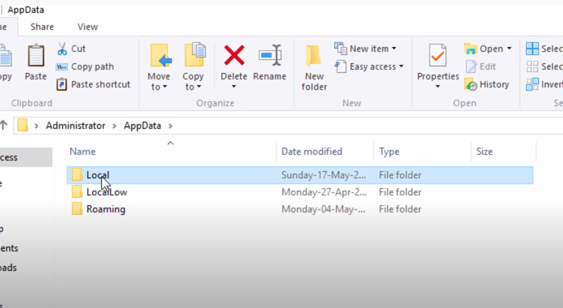 After entering appdata it will take you to the roaming folder, from which you have to go back and enter the carepta that says “local”