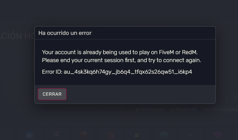 I don’t know if you can help me here… but on every server I try to join, I get the same error saying my account is already active on that server. I restart the game and my PC, and it works fine at first, but when it starts loading the mods, it kicks me out again for the same reason. Does anyone know what this could be and how to fix it?