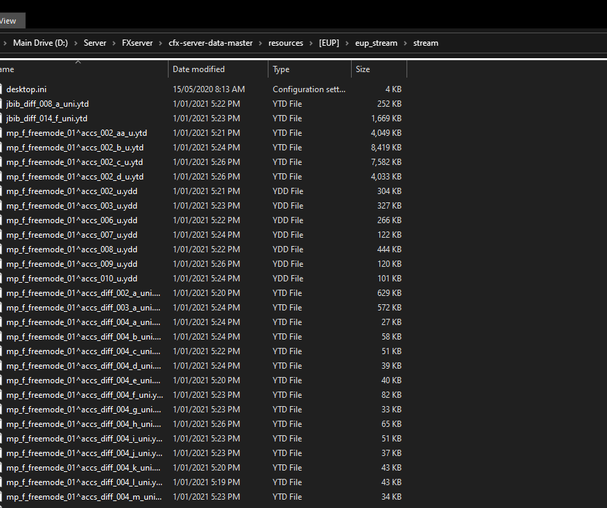 When I first installed eup it worked perfect all the uniforms and everything here recently streaming some custom clothes to a clothing folder for civilians everything is messed up with eup.Ex