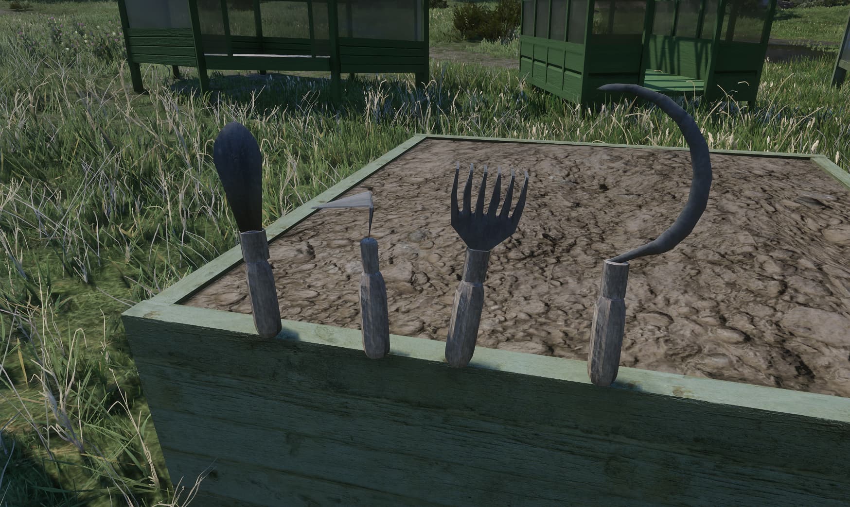4 types of hand tool (hand hoe, hand rake, hand shovel, hand sickle)