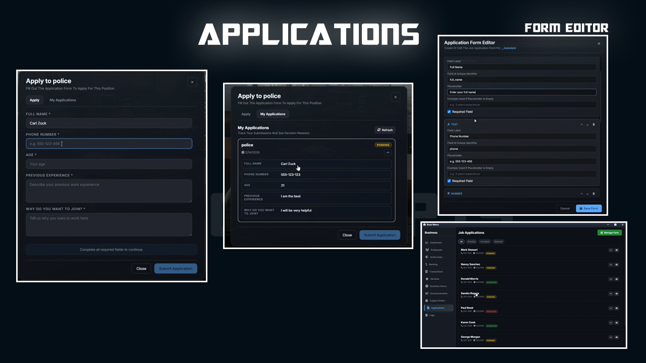 - Application Points - Players apply for jobs in-game; boss accepts or rejects from the menu