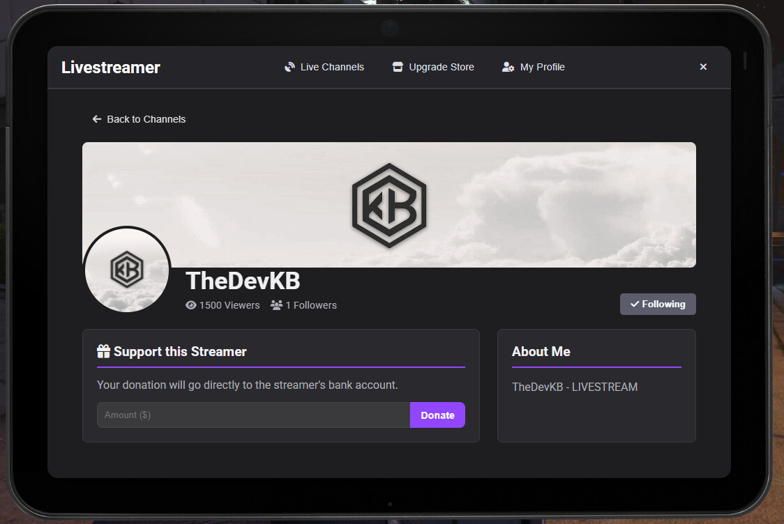 This script is an immersive in-game streaming system for the QBCore, ESX & QBX Framework, allowing players to become streamers, interact with chatters and grow their audience by increasing views and earnings through upgrades and engagement. It enhances immersive roleplay by introducing a dynamic streaming career path that players can build and customize within the game world.