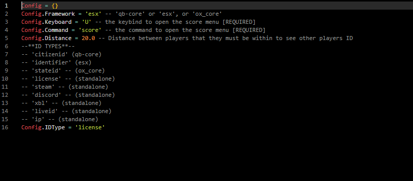 - Different ID Types to Display (license, steam, identifier, citizenid, stateid, discord, ip, etc.)