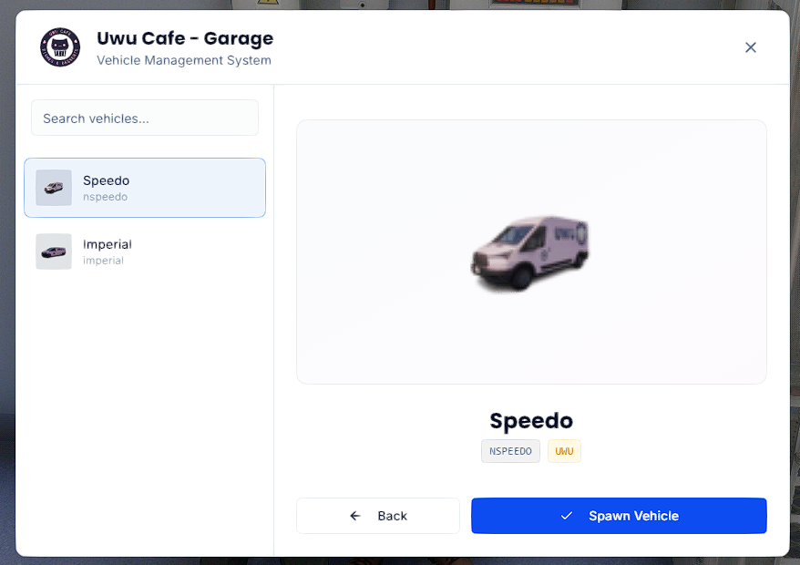 Employees can spawn delivery vehicles via custom UI and add unlimited vehicles with different liveries.