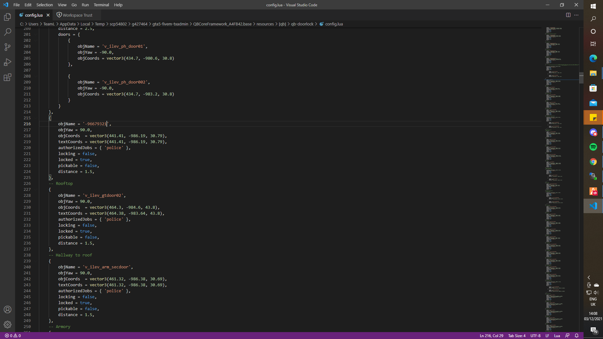 For it to work you have to put the correct door name, not the hash. You’ll have to look up the name of that gabz door