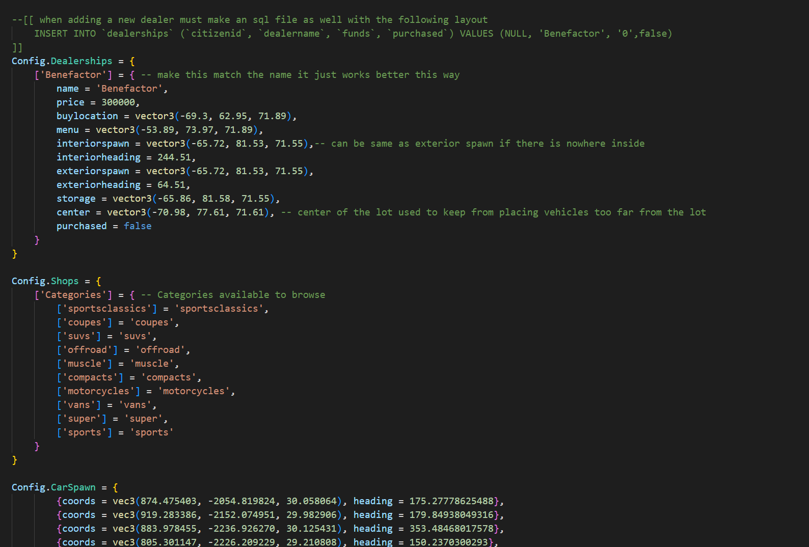 i will add that in a future edit i have a couple more things to work on currently but right now you are able to add dealerships and change car pickup locations and such