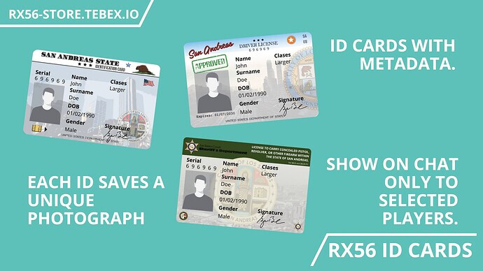 - Customizable IDs: Each card (ID CARD, DRIVERCARD, and WEAPONCARD) has a unique image that the user can update at will.