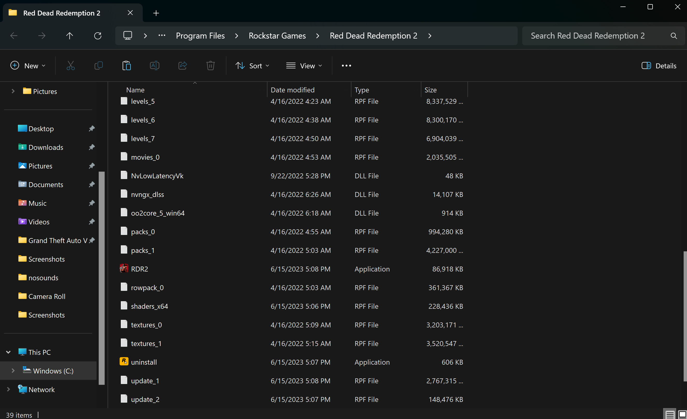 RDR2 folder screenshot
