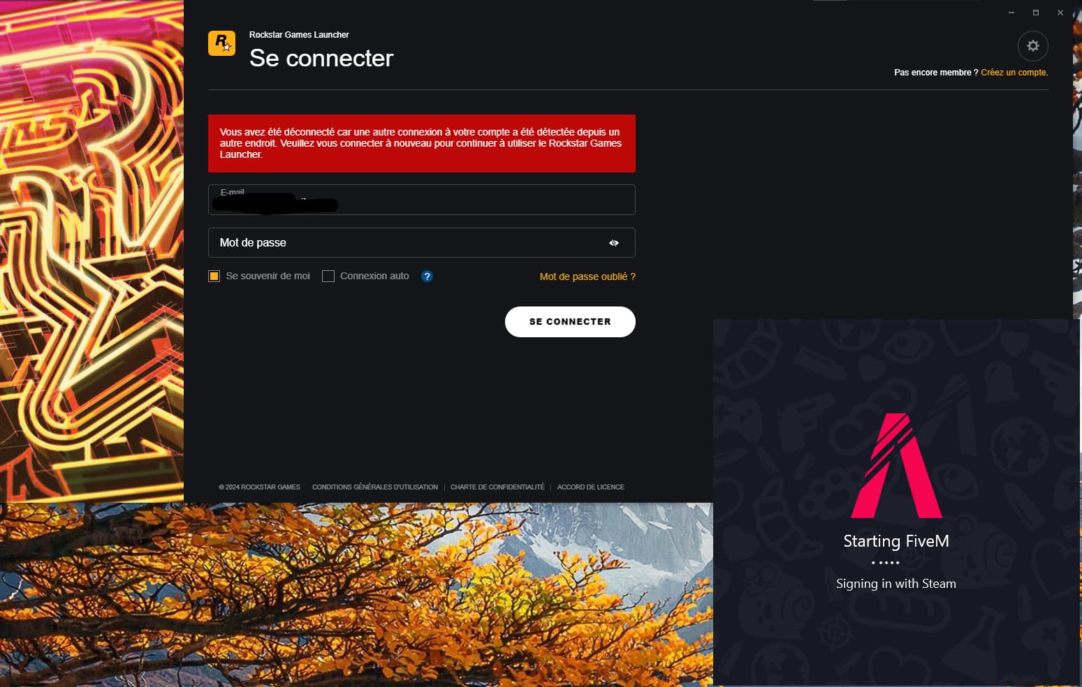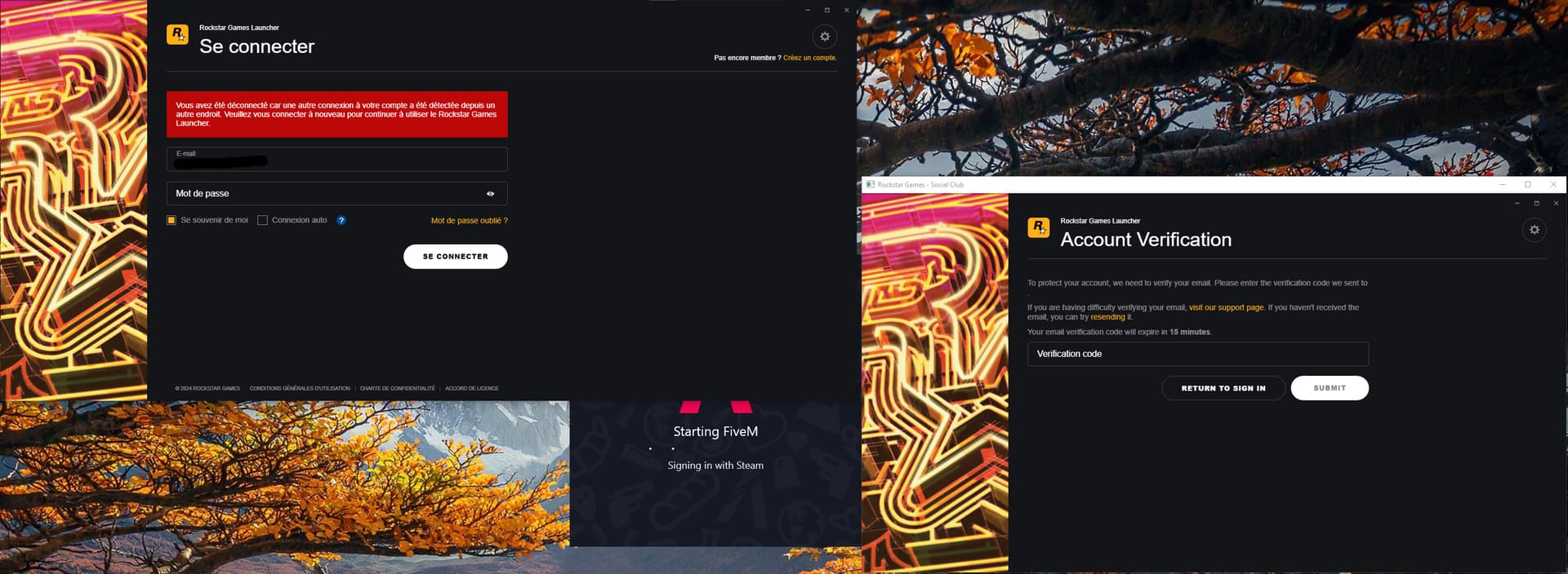But Rockstar Social Club detect that my account is trying to log in another place, and disconnect in the app.
