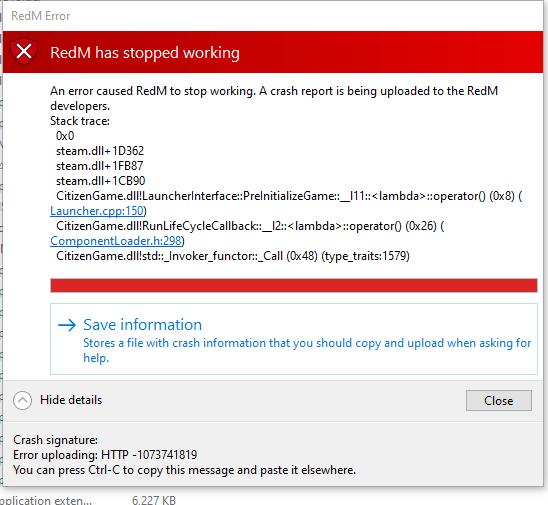 **What did you do to get this issue?Simply started the game What server did you get this issue on? Latest CitizenFX_log file .dmp files/report IDs
