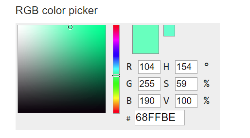 { 104, 255, 190 }, This is Like a very lime green colour as you can see from the picture below