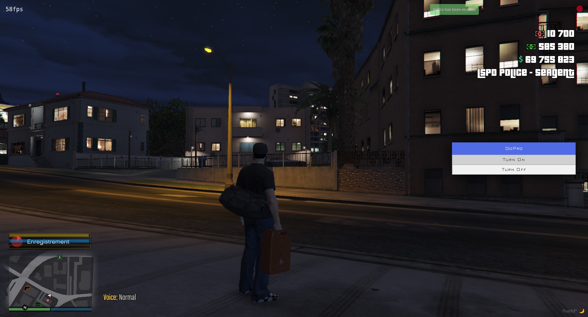 exports['mythic_notify']:DoCustomHudText('success', 'GoPro has been enabled', 1000)