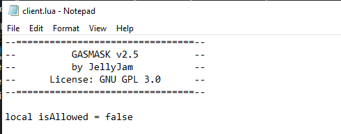 To Allow The Gas Mask For Everyone Change The false to true