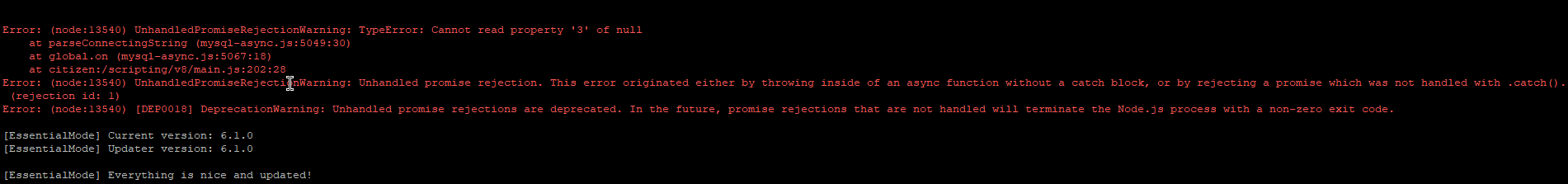 Error: (node:22) [DEP0018] DeprecationWarning: Unhandled promise rejections are deprecated. In the future, promise rejections that are not handled will terminate the Node.js process with a non-zero exit code.