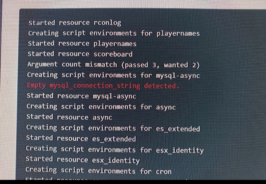 In my server.cfg i have it like this mysql_connection_string “server=127.0.0.1;uid=root;database=es_extended”