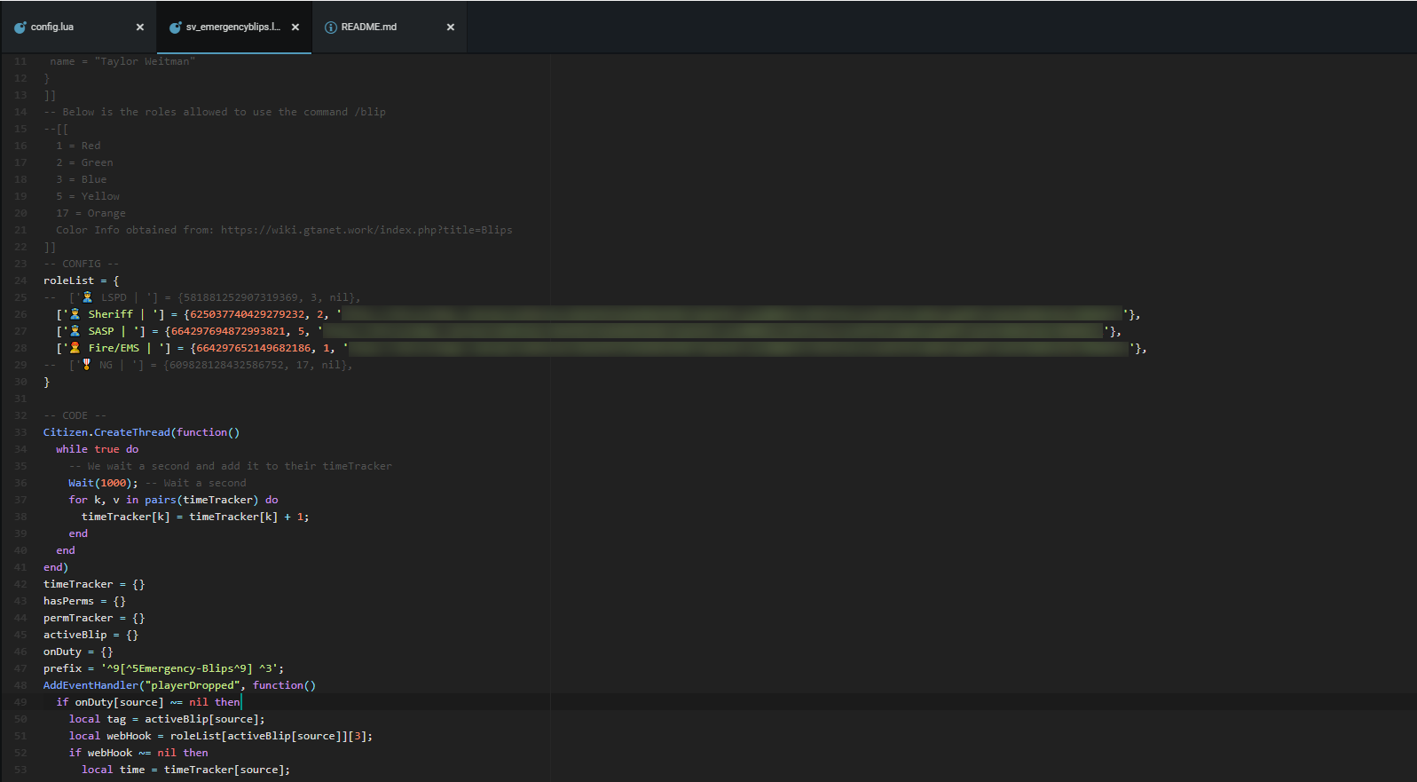 Now paste that link in the sv_emergencyblips.lua at the end of each role that you have like this ‘webhook link’.