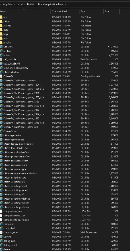 FiveM client folder screenshot: