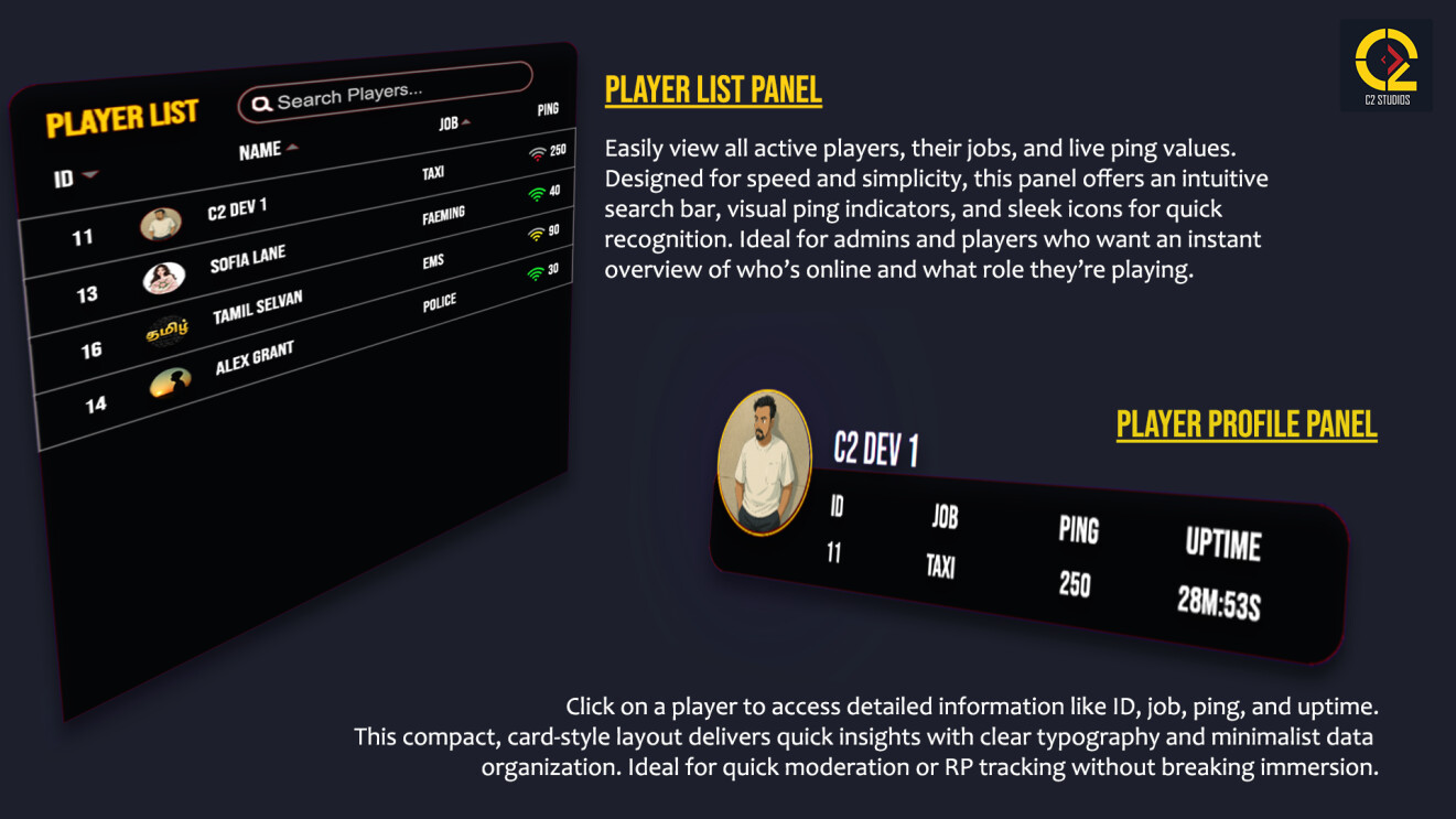 C2 Scoreboard is a lightweight, modern, and fully optimized scoreboard designed for FiveM servers.
