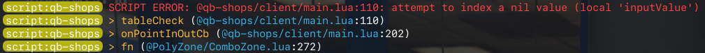I just switched over to the new QB inventory & QB Shops now I’m getting this client error and not sure why. I have found shops aren’t opening after restart however if I restart the resource in the console then shops will open. ![]()