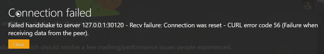 Client Error (of course when the server crashes it fails to connect)
