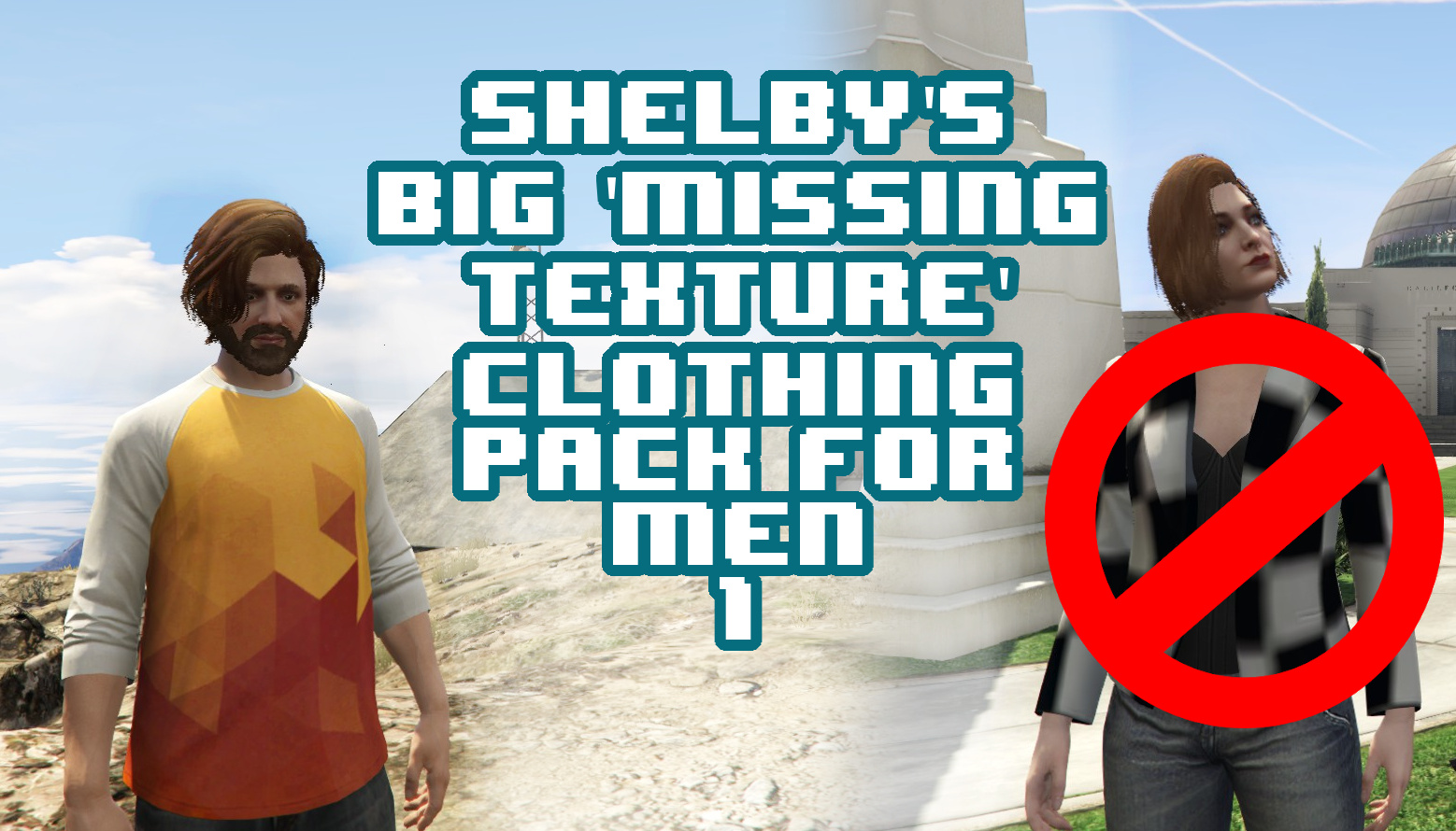 Hi everyone! This is a pack of additional textures for some tops, t-shirts, pants and shoes to fill the ‘missing texture’ slots for men. Don’t know what I mean? See the below example. That checkboard pattern indicates there are no textures for that texture slot: