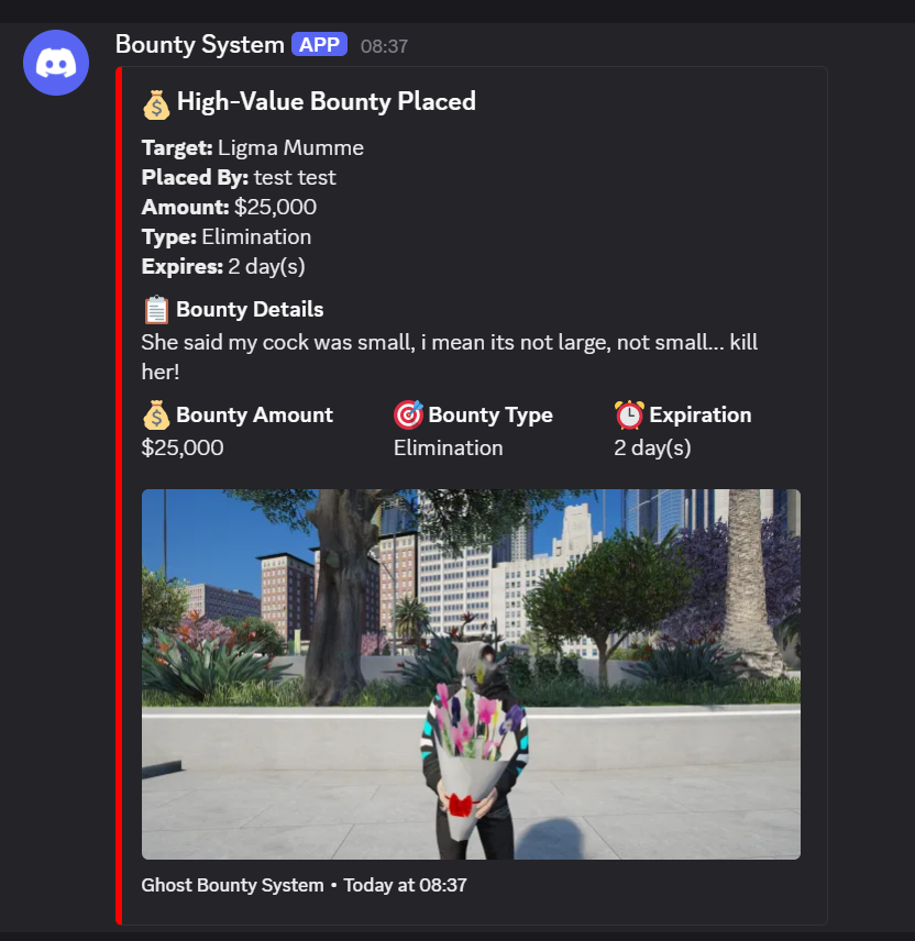 This is our new Fivem roleplay online kill contract system allowing players to place contracts on other players such as killing them, robbing them and kidnap for example. You can choose whether the player will automatically earn the reward upon completion or much more. Transform your FiveM serverโs criminal underworld with our comprehensive Player Contracts System. Players can place bounties on other players, browse active contracts, claim rewards by eliminating or capturing targets, and track their bounty history.